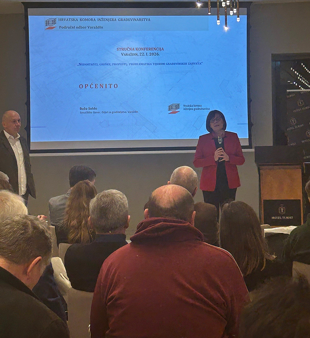 "Nedostatci, greške, propusti i problematika tijekom građevinskih zahvata" naziv je stručne konferencije koju je Hrvatska komora inženjera građevinarstva - Područni odbor Varaždin, organizirala u četvrtak, 22. siječnja u hotelu Turist u Varaždinu. Konferencija je okupila oko 80 članova HKIG-a radi razmjene znanja i iskustava o izazovima u građevinskoj praksi od planiranja do izvedbe radova.